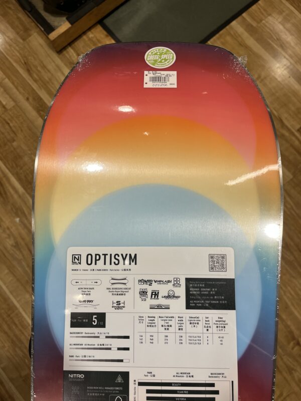 OPTISYMはナックルハックやグラトリ用に開発されたアシンメトリーツインチップボードです。ミディアムソフトフレックスでハイブリットキャンバーと遊び易く、アシンメトリー構造によりエッジサポートもしっかりとしており、グラトリ、カーヴィング、パークとオールラウンドに活躍してくれるボードです。こちらはレディースバージョンになります。