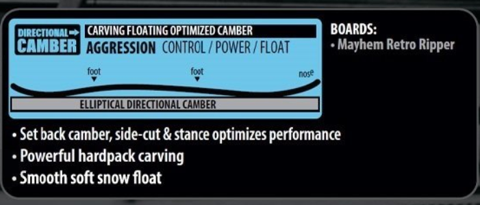 12.7cmのしっかりとしたセットバックにより、深い雪でもノーズが浮きやすく、まるでサーフィンのようなライン取りが可能。スワローテールはカービング時に粘りがあり、エッジを立てやすいので、パウダーだけでなく通常のゲレンデカービングでも安定感を発揮します。