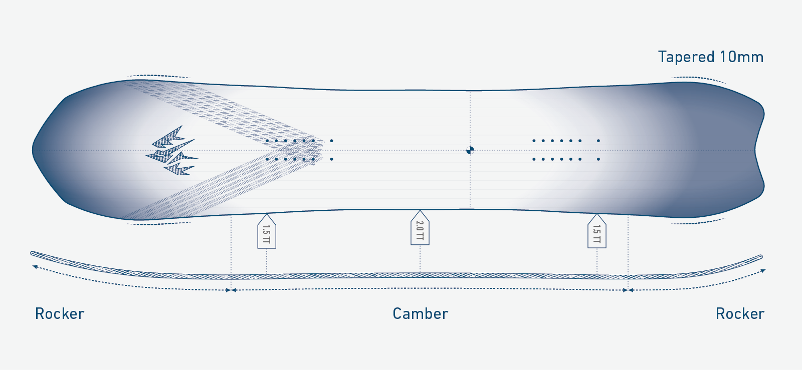 - 軽快なフロートを実現するテーパード・ディレクショナルシェイプ