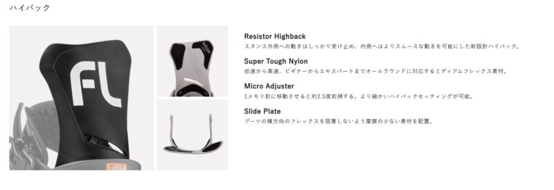 力の伝えにくいトーサイドはボードへの伝達効率を重視した幅広のベースプレート仕様となり、遊びやすさをだすために柔軟な動きが必要なヒールサイドは、クッション性と反発性の高いスタビライザーによって可動域を拡げています。