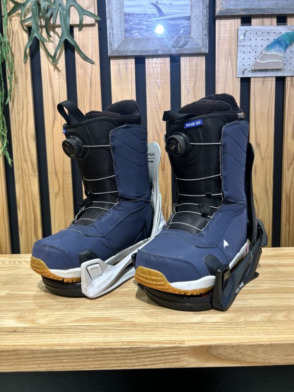 『スタッフコメント:①②セット販売のみですが、セット価格は¥50,000!ブーツは、いわずと知れた名作RULER、価格とクオリティのバランスが最高、ソフト~ミディアムくらいの扱い易さです。FLUX史上初の「STEPON」一度STEP ONに乗り換えると、スノーボードの快適さが激変します。是非、お試しください。』