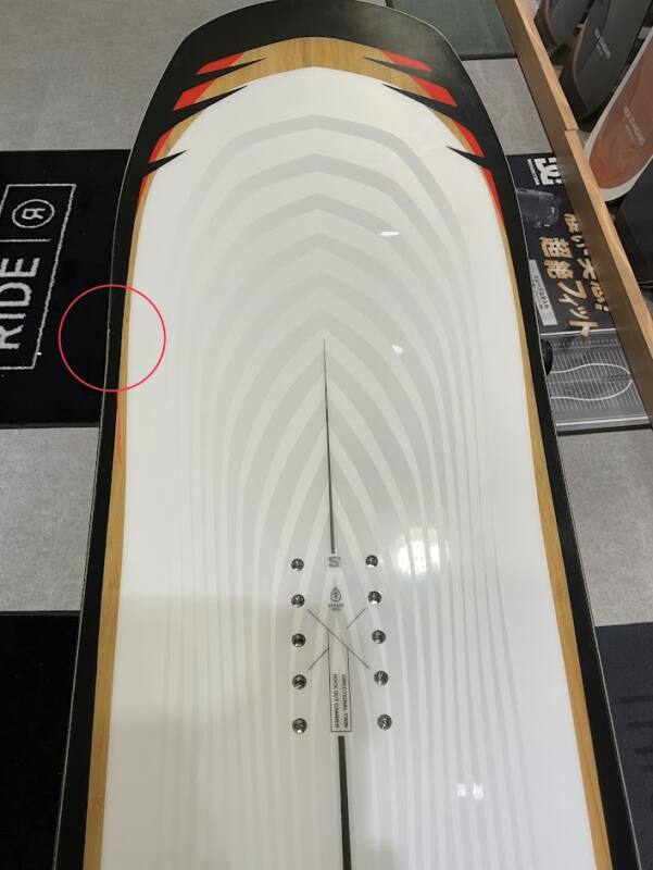 新品未使用品であっても、店舗にて展示中についた細かい傷がある場合もございます。中古ボード特有のものでございまして、価格がお安くなっている理由の一つでございます。