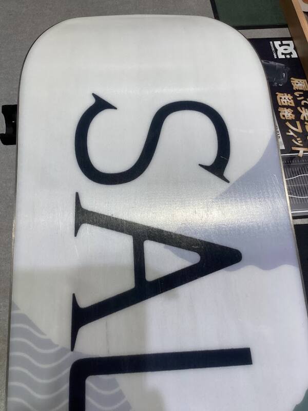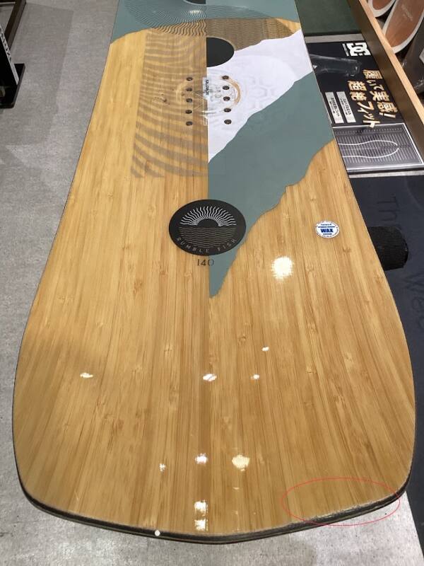 新品未使用品であっても、店舗にて展示中についた細かい傷がある場合もございます。中古ボード特有のものでございまして、価格がお安くなっている理由の一つでございます。