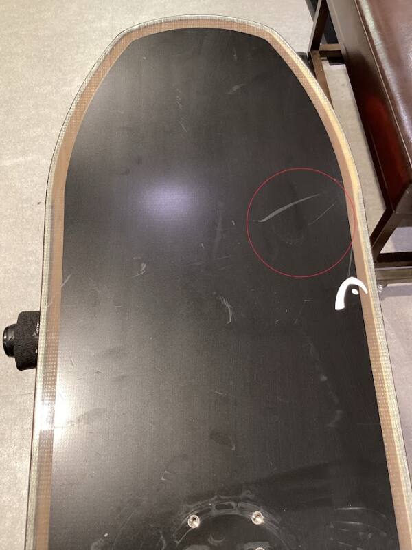 新品未使用品であっても、店舗にて展示中についた細かい傷がある場合もございます。中古ボード特有のものでございまして、価格がお安くなっている理由の一つでございます。