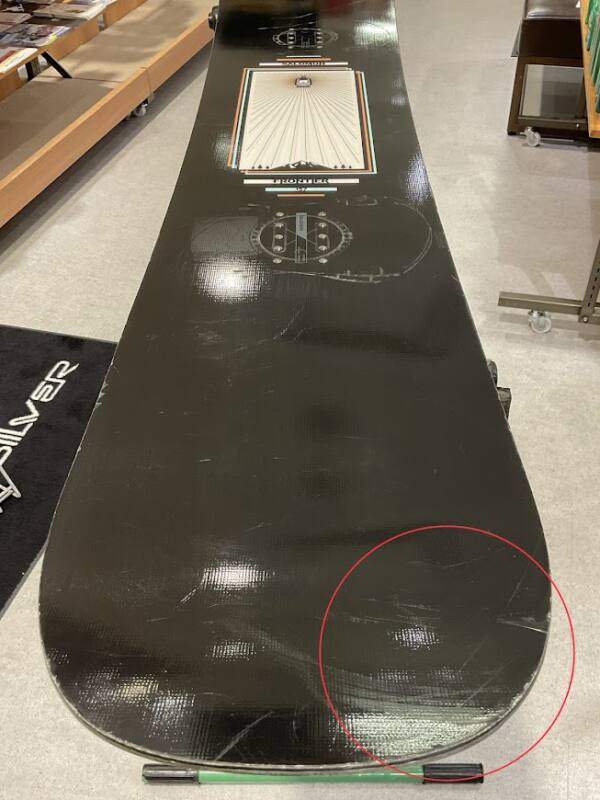 新品未使用品であっても、店舗にて展示中についた細かい傷がある場合もございます。中古ボード特有のものでございまして、価格がお安くなっている理由の一つでございます。