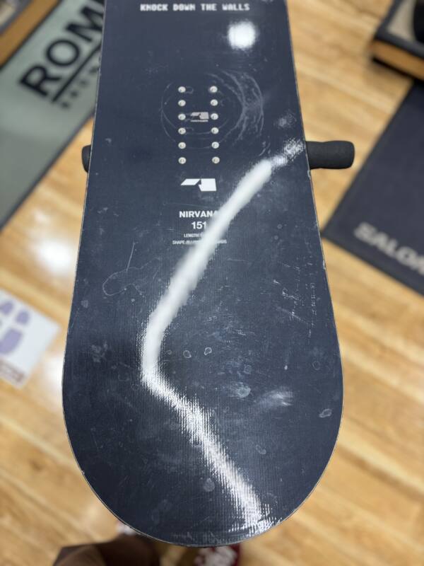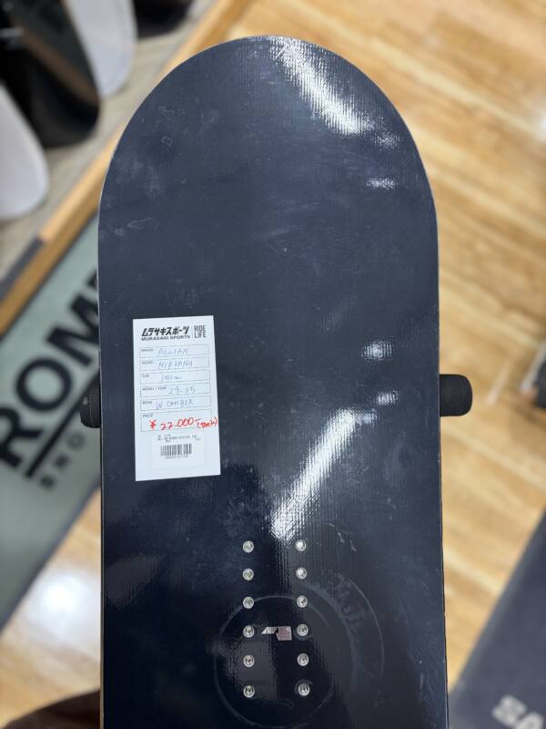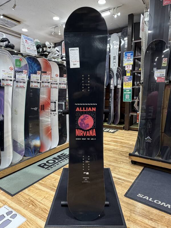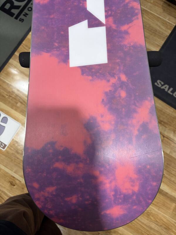 オールテレインフリースタイルボード。ディレクショナルツインキャンバーで少し太く硬めのフレックス、