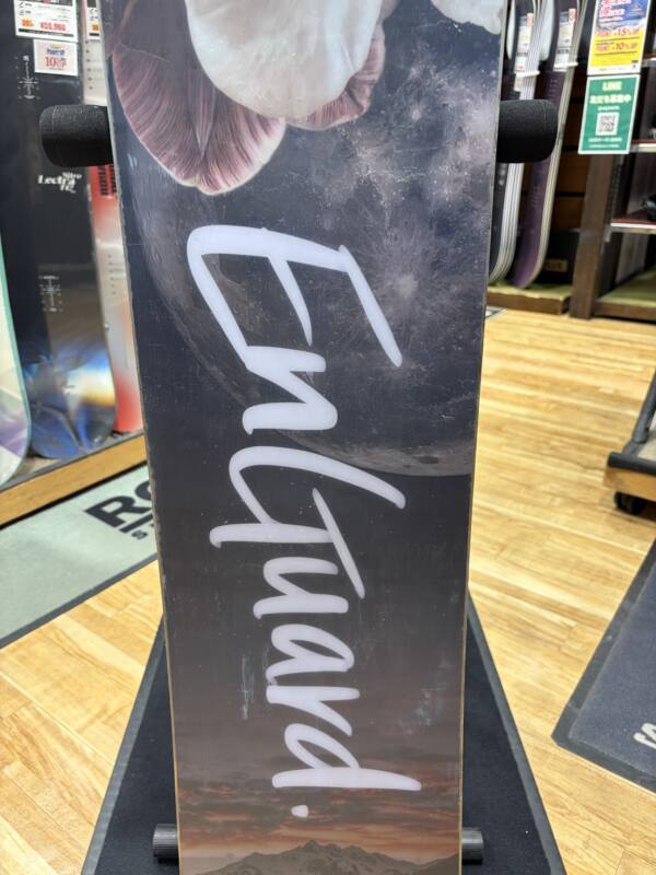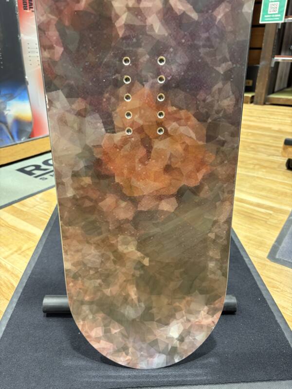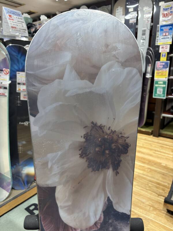 フレックスはやや硬めで張りのあるダブルキャンバー。 Lilacと比較すると、ウエスト幅が少し太くなっており、面の乗りやすさを実現。乗って耐えられるポイントがノーズとテールの端にあり、乗り系にも特化しているが、ウエスト幅の太さによってターンがよりし易くなっている。 センターのロッカーが強めで、フレックスは硬めにできている為、ランスピードが速い中でもトリックが安定するダブルキャンバー。速いスピードでもランが安定し、ゆっくりグラトリしてもしっかり乗れる。いろんなスタイルでグラトリを楽しみたい方におすすめなモデル。