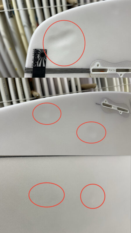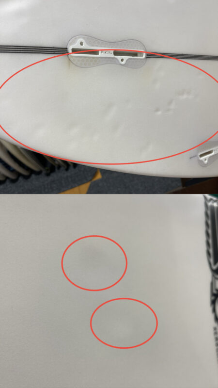 新品未使用品であっても、店舗にて展示中についた細かい傷がある場合もございます。中古ボード特有のものでございまして、価格がお安くなっている理由の一つでございます。
