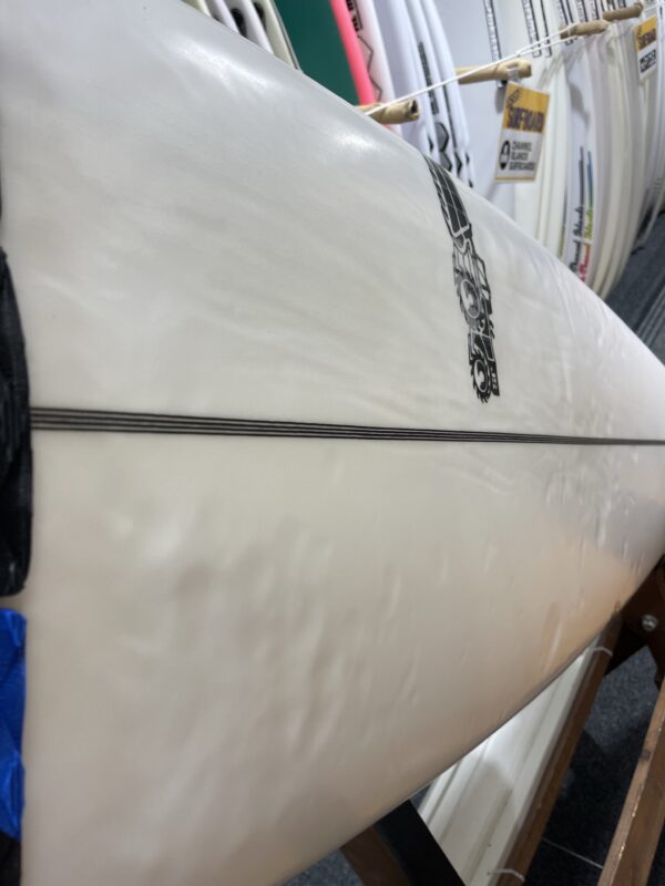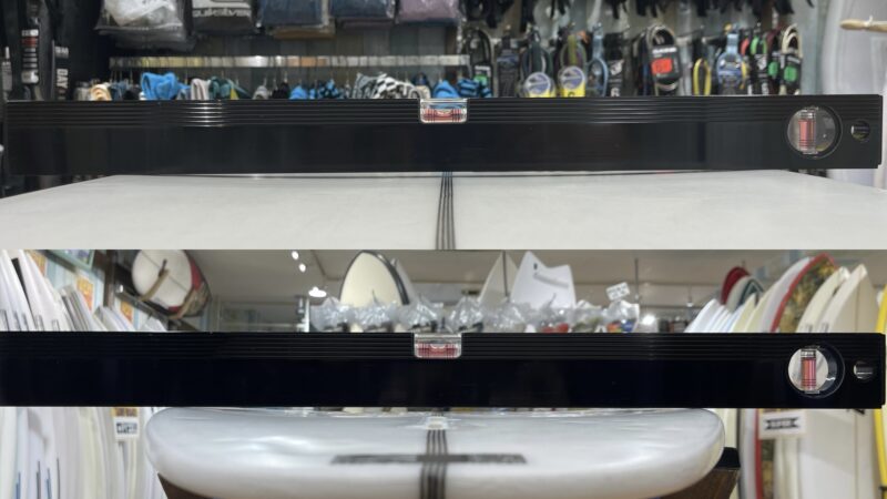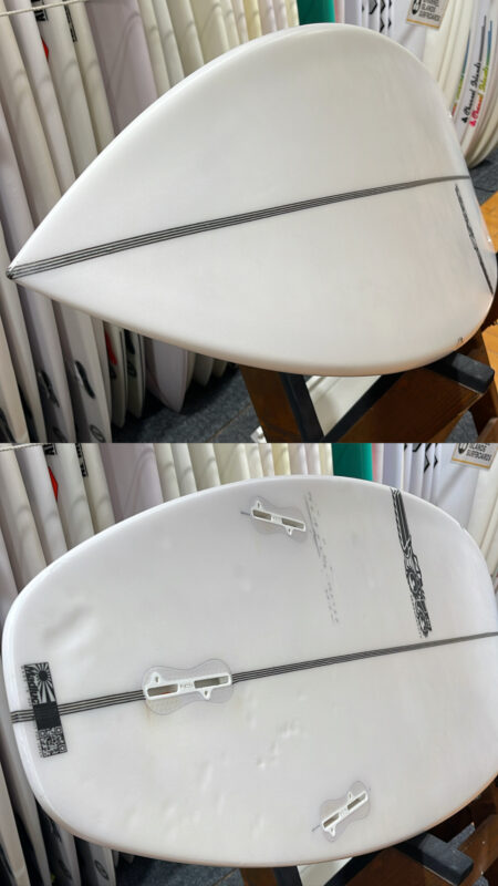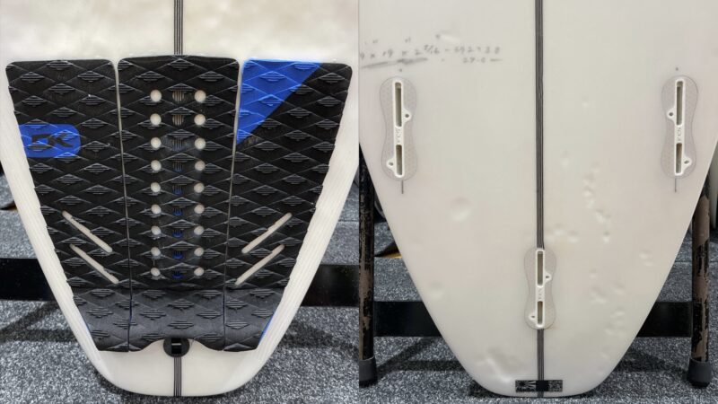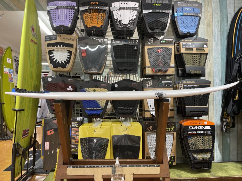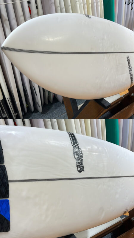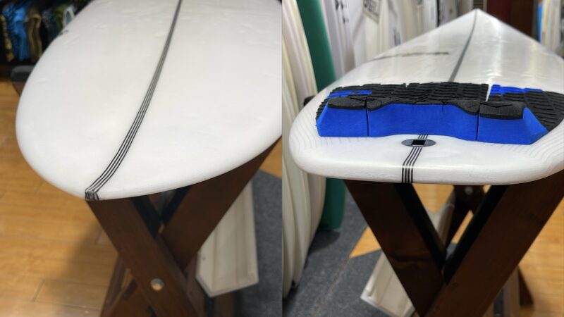 ボトムデザインは全体的にシングルコンケーブが施され、その中にボード中央付近からテールエンドまで
