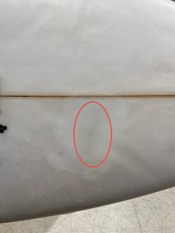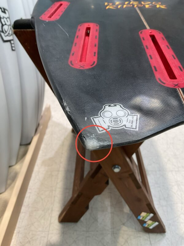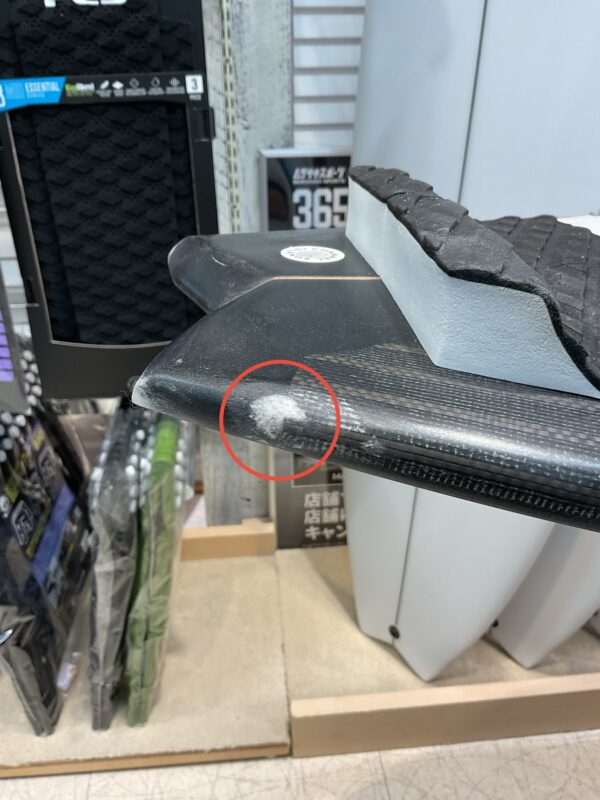 大小の凹みが多数入っていてブラシが入っていないノーズ寄りに日焼けが見られ、
