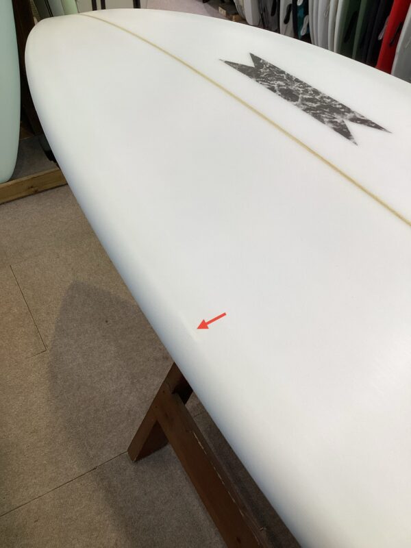 ↑ボトム面のテール側に製造の過程でできてしまった傷がございます。