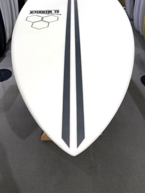 【C6 wired】 新しいC6 wiredはサンダーボルトテクノロジーによって開発された革新的なフレックス性能を持つ新次元のサーフボードテクノロジーです。 ノーズからテールエリアまで埋め込まれているカーボンサンドストリングバー上にカーボンを沿わせることで、まるでサーフボード自体が生きているかのようにコンディションに合わせてしなりを生み出します。 さらに、通常のウッドストリンガーよりもしなりからの戻りが速く、しなりで蓄えた大量のエネルギーを効率的かつスピーディーにアクションに変換してくれるのが特徴です。 波から最大限のパワーを引き出すように働いてくれるため、ターンでのドライブやリッピングの切り返しにおいて、加速しながら次のマニューバーへとトランジッションして行くことが可能です。 また、カーボンは強度、耐久性が高いため、時間を経てもフレックス性能が落ちることなく、サーフボードのパフォーマンスを長く保ち続けることができます。