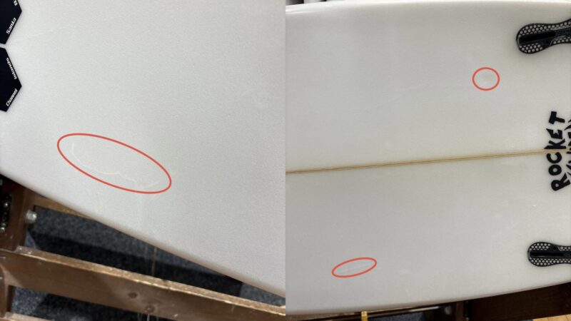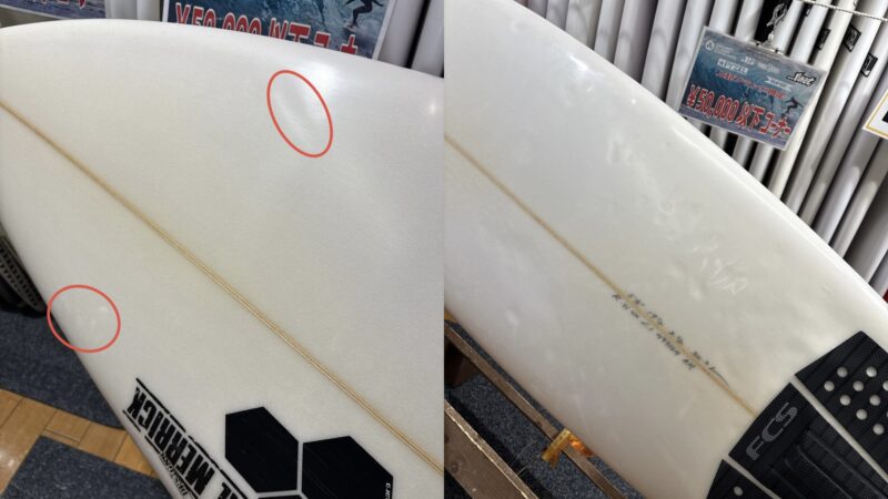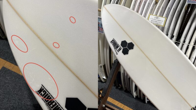 新品未使用品であっても、店舗にて展示中についた細かい傷がある場合もございます。中古ボード特有のものでございまして、価格がお安くなっている理由の一つでございます。