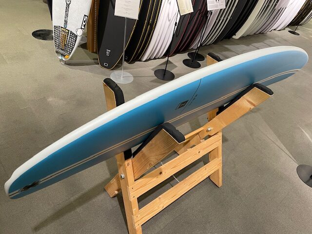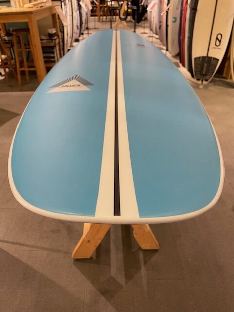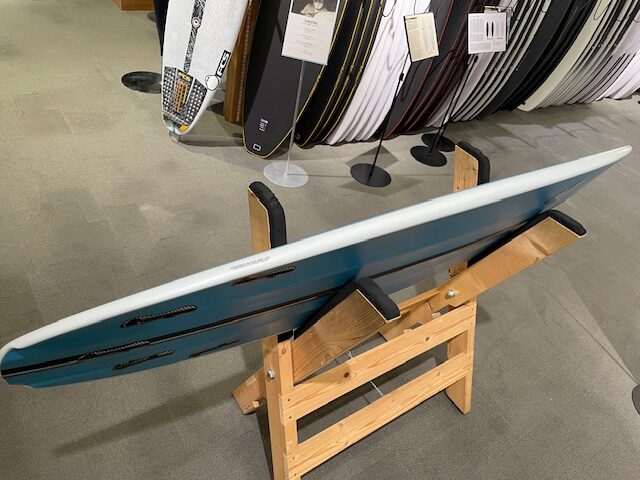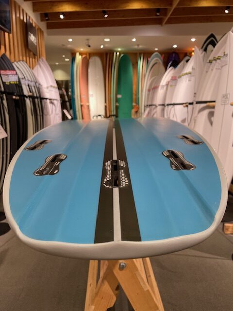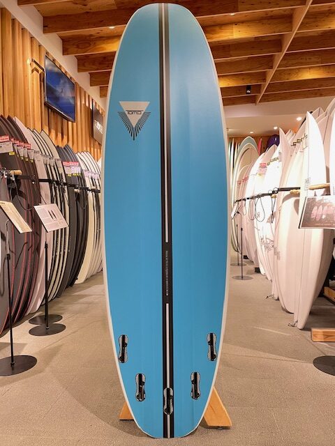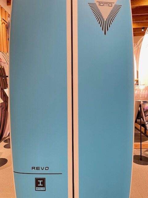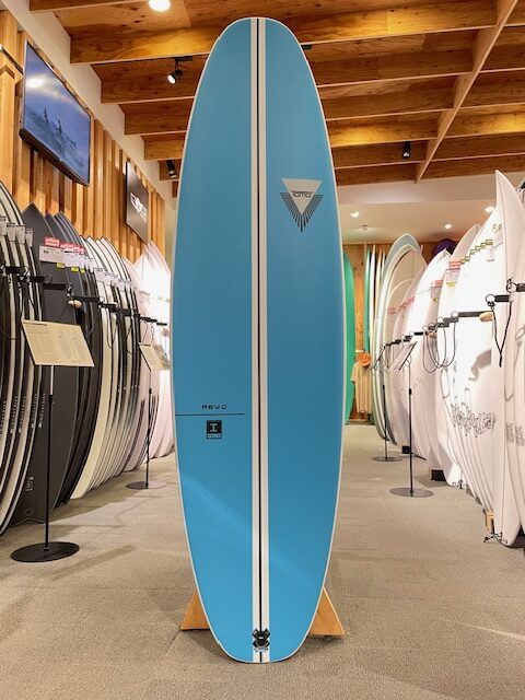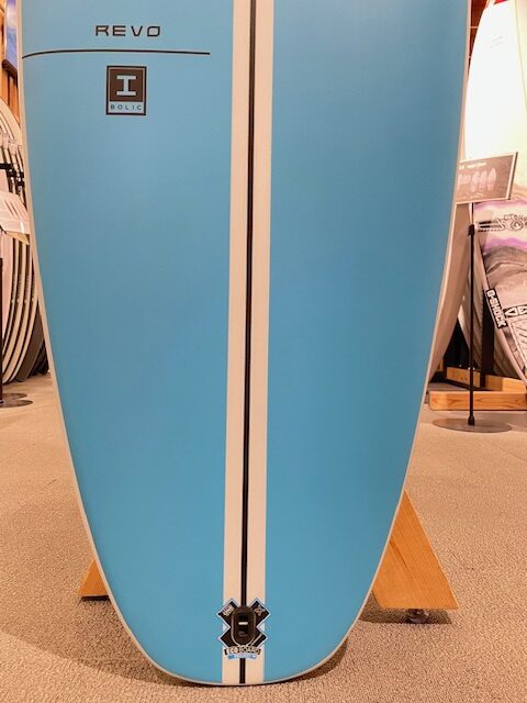 今回このREVOから新しく採用されたファイヤーワイヤーの新構造の『I-BOLIC』により、レイル、デッキ面の強度が上がり、性能の面では特に反発性能が高まったことにより、スピード性、レスポンス性が向上しパフォーマンス性能が格段にUPしました。膝波から掘れ上がるような頭オーバーの波まで対応できる万能なロッカーバランスを持ち、ノーズは先端部分をはぶいたノーズレス形状が特徴的です。また、最大の特徴とも言えるのは個性的なコンケーブにあります。EVOでも施されていたクアッドコンケーブが継続され、ボトムにはっきりと4本の深い溝が確認でき、さらに中央は突起した脊髄のような形状を持った特殊なコンケーブになっています。このボトムコンケーブによりボトム面の水流をテールエンドまで流しスピード性をもたらし、突起した中央の強いVEEのようなボトム形状により早い切り替えしが可能な高いマニューバー性を生み出します。