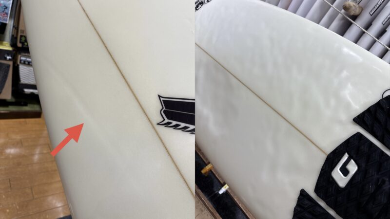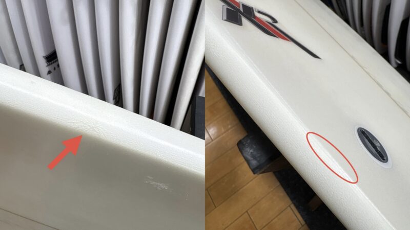 新品未使用品であっても、店舗にて展示中についた細かい傷がある場合もございます。中古ボード特有のものでございまして、価格がお安くなっている理由の一つでございます。