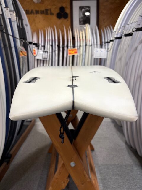 パフォーマンス性能を上げるために従来のTwinFinモデルよりテール幅は狭くなり、Finの位置はテール寄りになっております。