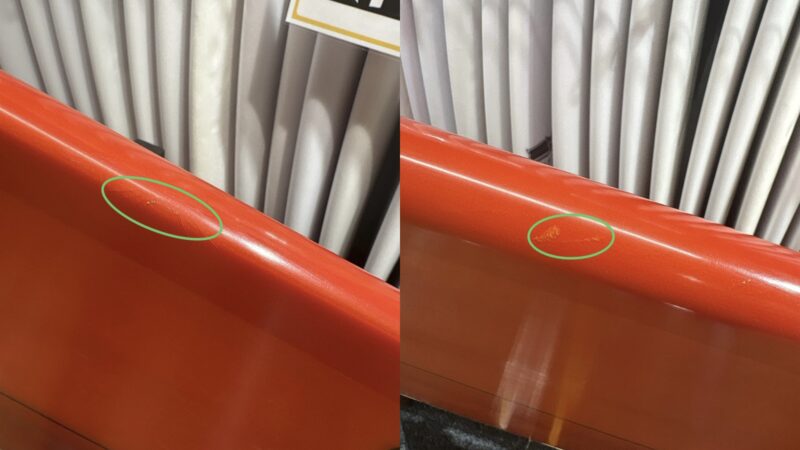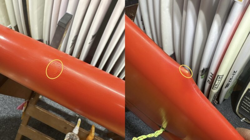レールはボリュームを残したミディアムテーパー、2か所小さなキズ(緑〇)2か所修理(黄〇)をしています。