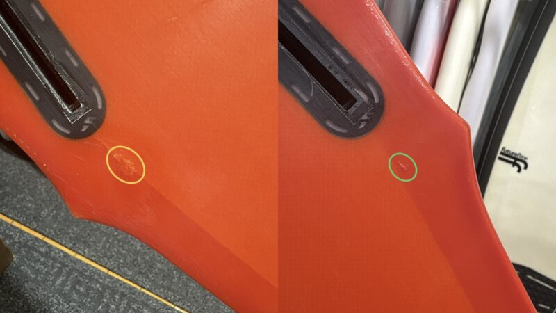 新品未使用品であっても、店舗にて展示中についた細かい傷がある場合もございます。中古ボード特有のものでございまして、価格がお安くなっている理由の一つでございます。