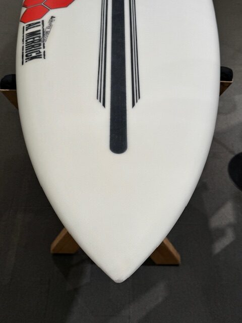 アウトラインやコンケーブはそのまま残しつつ、テール形状をラウンドにし波のポケットでスムーズ且つキレのあるカービング、