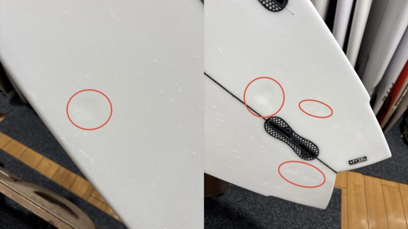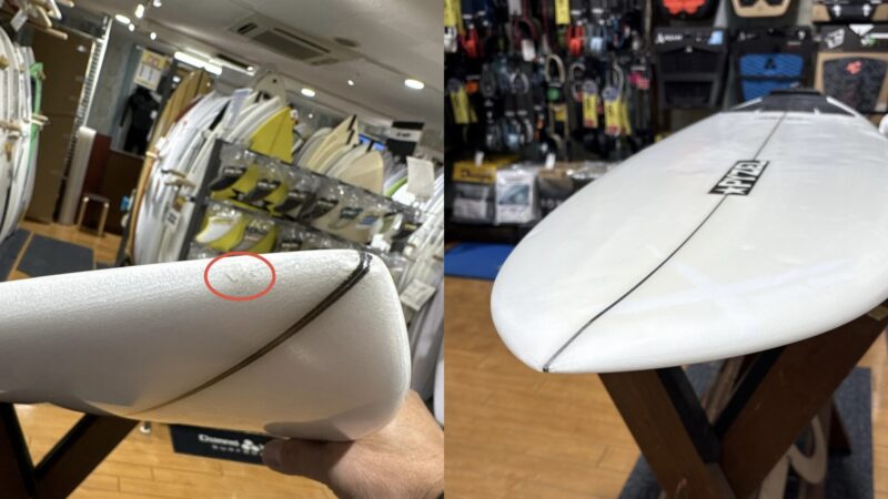 新品未使用品であっても、店舗にて展示中についた細かい傷がある場合もございます。中古ボード特有のものでございまして、価格がお安くなっている理由の一つでございます。