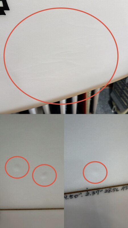 新品未使用品であっても、店舗にて展示中についた細かい傷がある場合もございます。中古ボード特有のものでございまして、価格がお安くなっている理由の一つでございます。