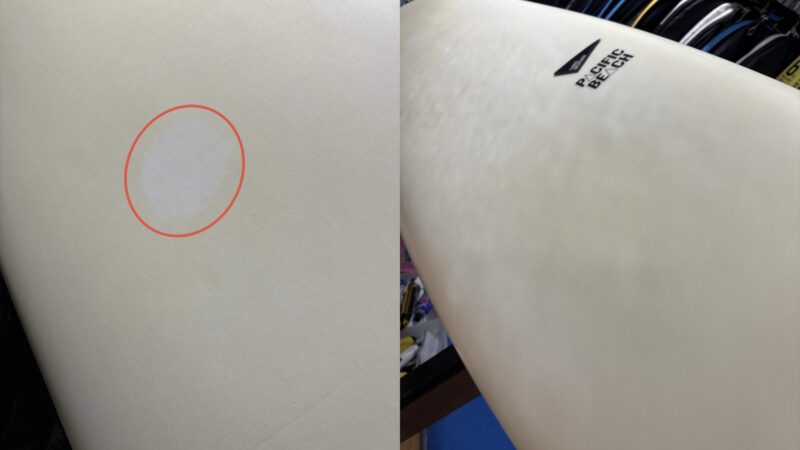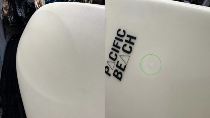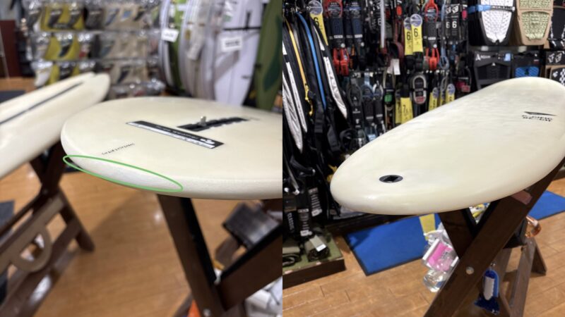 ボトム面、1か所 ( 緑〇 ) 修理をしています。