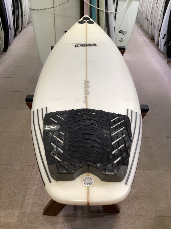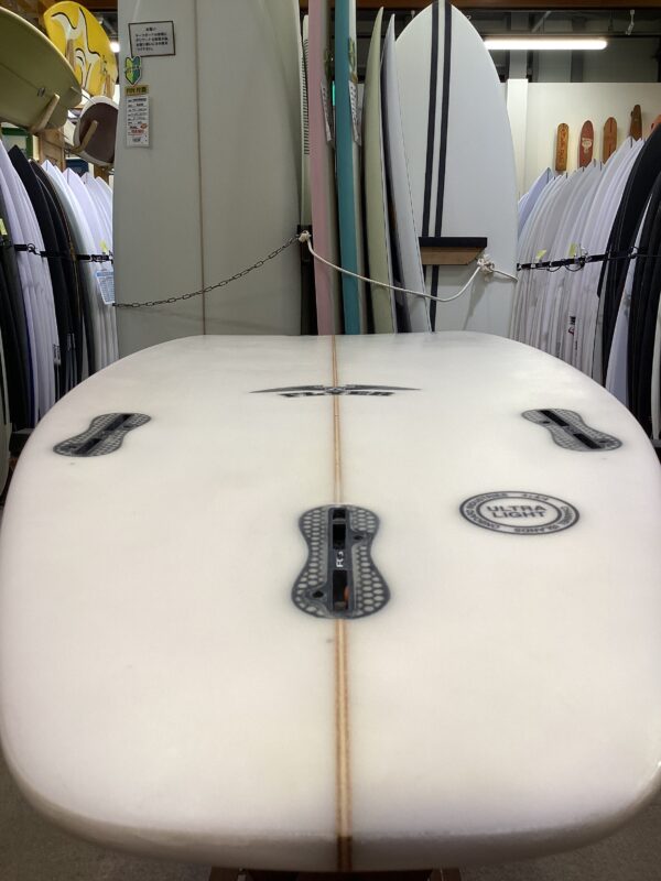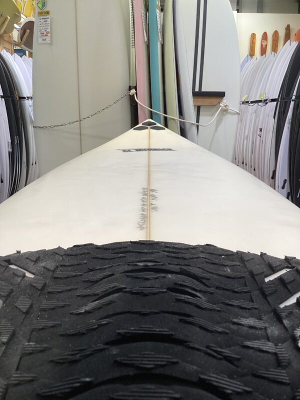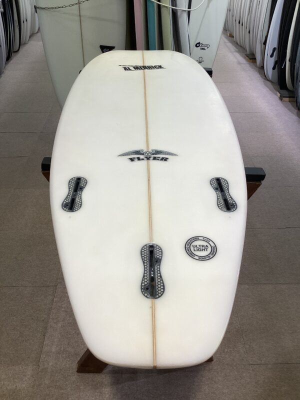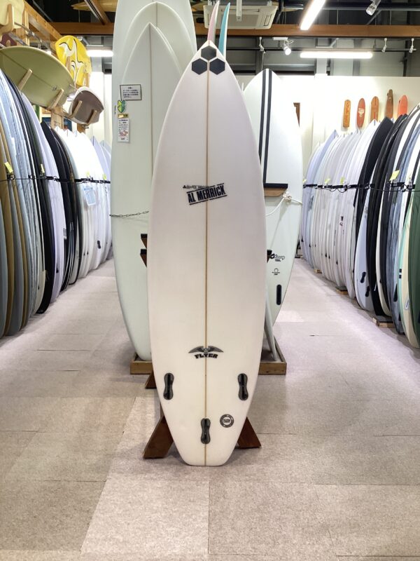 日常的なコンディションで毎日サーフィンするのにベストなボードであるThe Flyerは、シングルコンケーブから始まり、ミドルにかけてダブルコンケーブに変わり、テールにかけてはVeeが加わるモデルだ。また、アルの専売特許であるバンプスカッシュと若干ダウンしたレール、そして絶妙なかぎ鼻ノーズを備えている。自分の身長とほぼ同じ長さで乗るのがおすすめ。