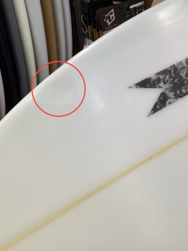 ↑ボトム面のノーズ寄りにヘコミがあります。