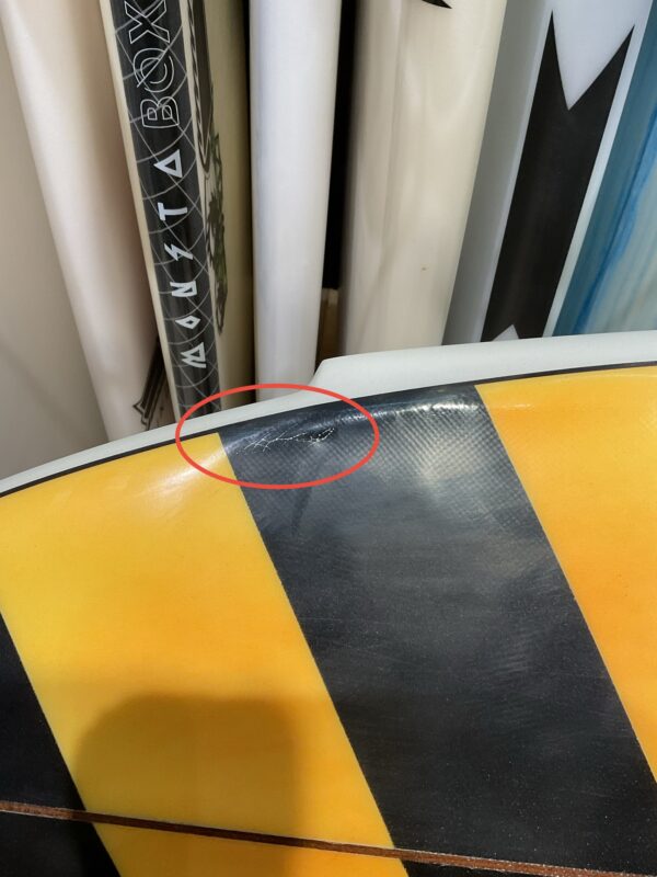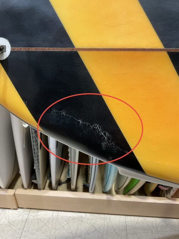 WAXが塗られていなかった箇所に日焼けが見られ、全体的にフットマークも入っています。