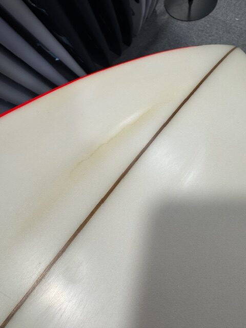 一ヵ所大き目のリペア跡があり、フットマークやステッカー・シールのはがし後も見られますがそのままの状態でお使いいただけます。