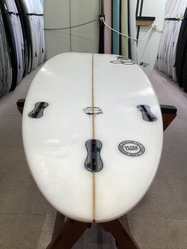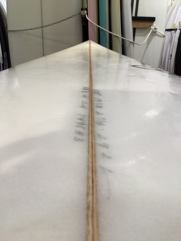 デーンの提案でオリジナルNECKBEARDのブイを抜き、全体的にシングルコンケーブのボトムデザインへと変更。これにより、ロッカーも少し変わり、ウェーブエントリー、”down-the-line”スピード、コントロール性、全てに対しての向上を成し遂げた。