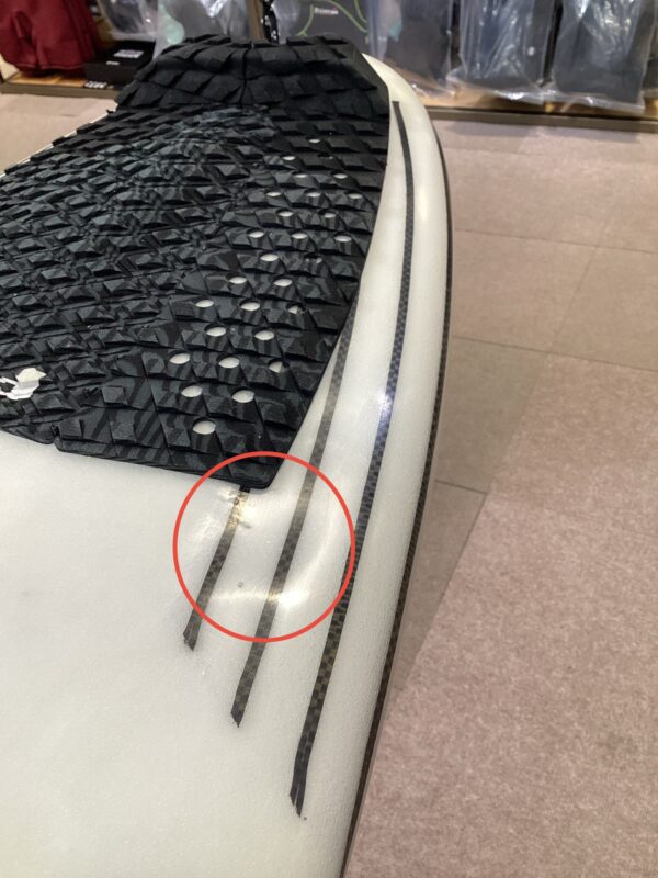 新品未使用品であっても、店舗にて展示中についた細かい傷がある場合もございます。中古ボード特有のものでございまして、価格がお安くなっている理由の一つでございます。