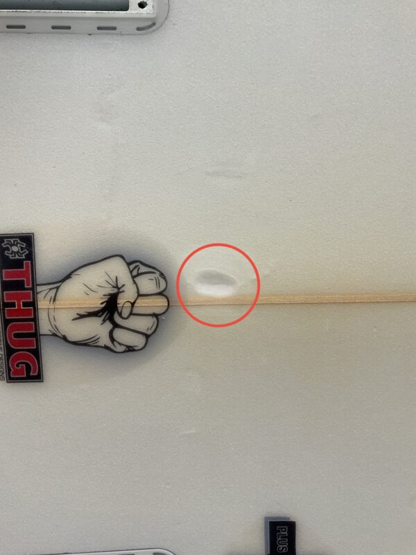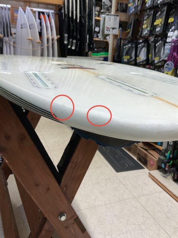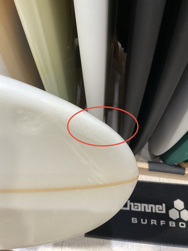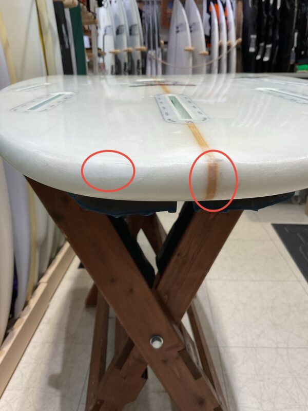 凹みに入っていたクラックを樹脂でリペアしてあります。