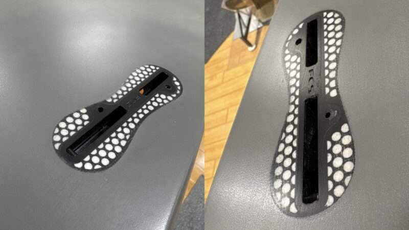 ボトムはノーズコンケーブ、そして後付けのFCSⅡ TWIN FINBOX (非常にキレイに後付けしています)。