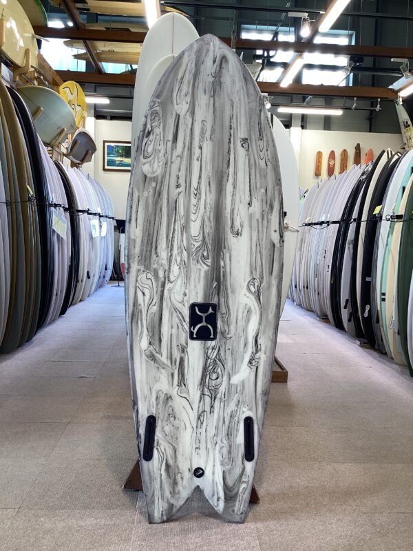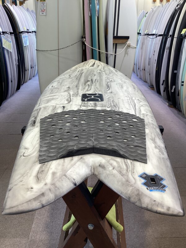 大きく異なるのは前モデルの特徴でもあったボトムのBoard Eat Board(チャンネルコンケーブ)は、Seasideでの経験と実績も取り入れて深めのシングルto ダブルへアップデートされ、テールの先端にかけてのVeeを継承し組み合わせることで更なるボードの安定性と、よりスムースな水の流れを両立させています。