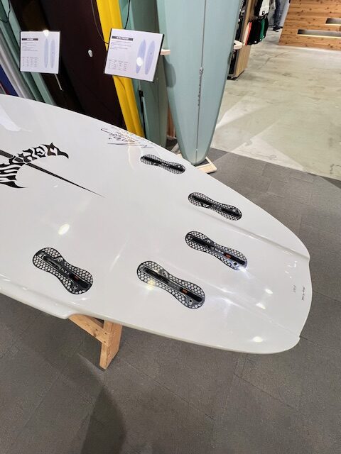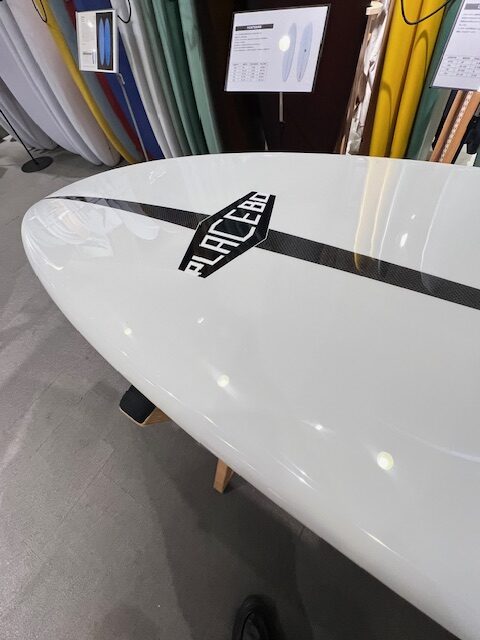 デッキとボトムにはSplit Rhombus Carbon(スプリット・ロンバス・カーボン)を搭載し、ライディング時のしなやかなフレックスが推進力へと変化。ターンや加速時の反発がよりスムーズで、スピードとドライブ感が格段に向上しています。ボードデザインはややワイドなアウトラインと控えめなロッカー、セミフラットデッキによって安定性とパドル性能を両立。セミビークノーズ形状がノーズまでボリュームを持たせ、素早いテイクオフを可能にします。ボトムはシングルからダブルコンケーブ、そして2チャンネル構造へとつながり、滑走性とコントロール性を高いレベルで融合。厚みのあるレールにはPLACEBO伝統のE.V.W(エレベーターウイング)を採用し、軽快なターンの初動と機敏なレールワークをサポートします。ドルフィングラブレールによりドルフィンスルーもしやすく、小波からサイズのある波まで対応可能。80’sのクラシカルなデザインを現代に蘇らせた『RAD DIABLO 2.0』は、パドルが楽でスピード感にあふれ、レベルを問わず日本の波を最高に楽しめるオールラウンドモデルです。