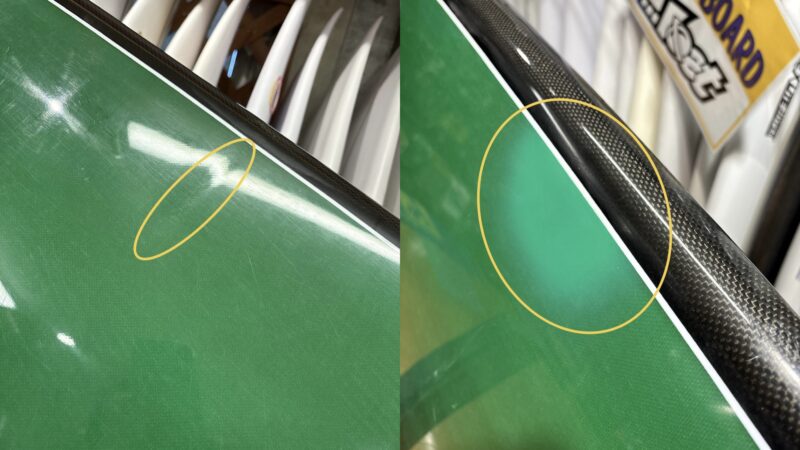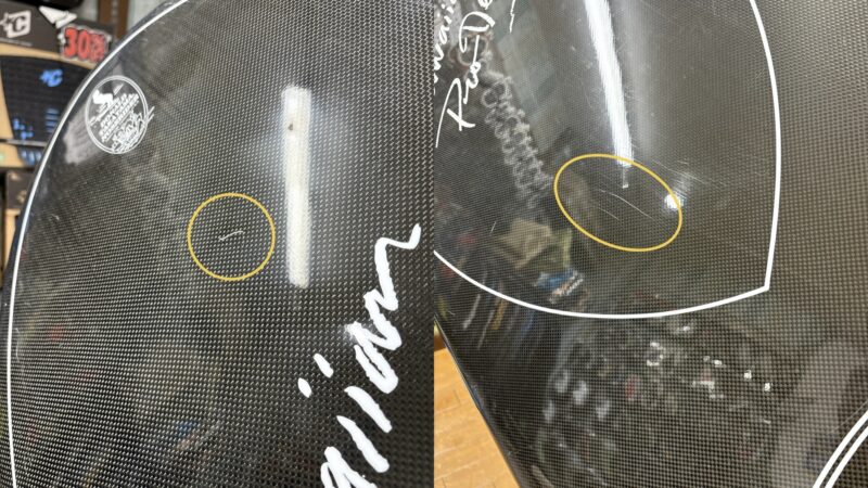 新品未使用品であっても、店舗にて展示中についた細かい傷がある場合もございます。中古ボード特有のものでございまして、価格がお安くなっている理由の一つでございます。