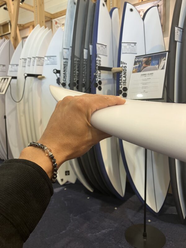 これにより、小波の狭いポケットやクリティカルなセクションにおいてタイトなマニューバーを描くことが可能でした。