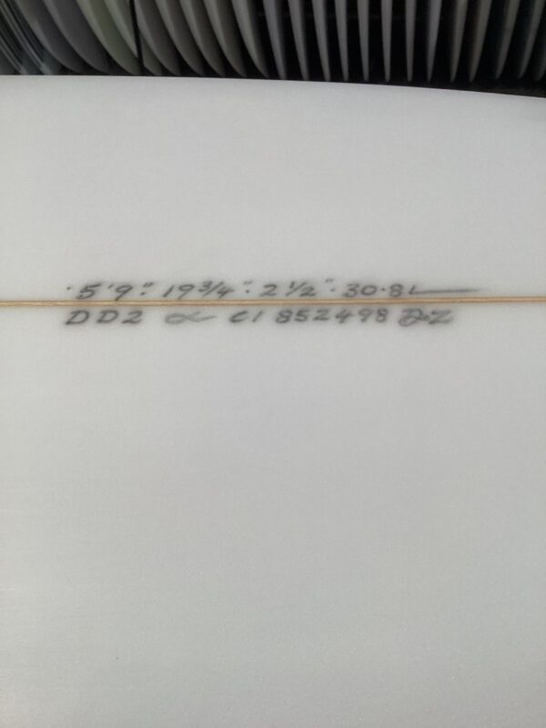 初期のダンプスターダイバーは彼のお気に入りの小波用ボードを改良したものでしたが、大会での使用には適さないと感じ、狭いノーズを追加しました。