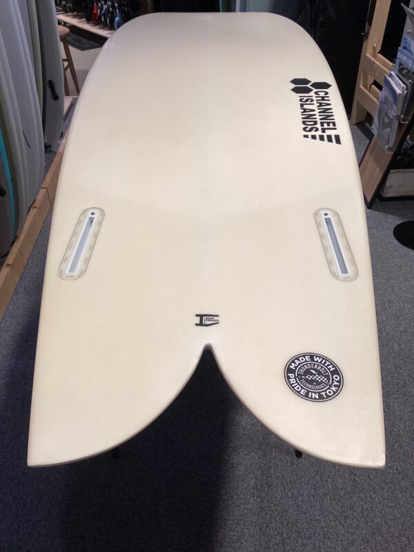 ・パフォーマンスツインの代名詞となったチャネルアイラインズ『CI FISH』のサンダーボルト『アイビームストリンガー』仕様になります。全体的にEPS特有の日焼けと一部小さな修復歴箇所がございますが、デッキとボトムコンディションも良くすぐに乗り出し可能となっています。また希少なビッグリッターサイズで、ミッドレングスに負けないパフォーマンスにも期待ができます。尚、中古の『FUTURES CI KEEL』フィンも販売していますので是非合わせてご検討のほど宜しくお願いいたします。