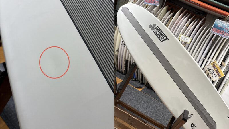 新品未使用品であっても、店舗にて展示中についた細かい傷がある場合もございます。中古ボード特有のものでございまして、価格がお安くなっている理由の一つでございます。