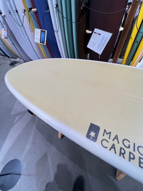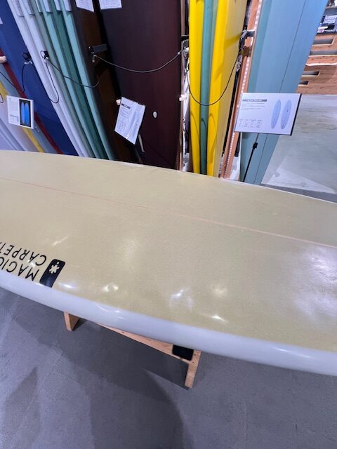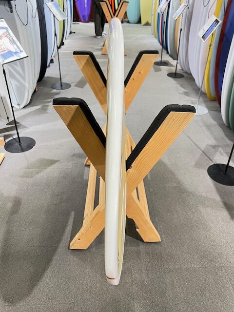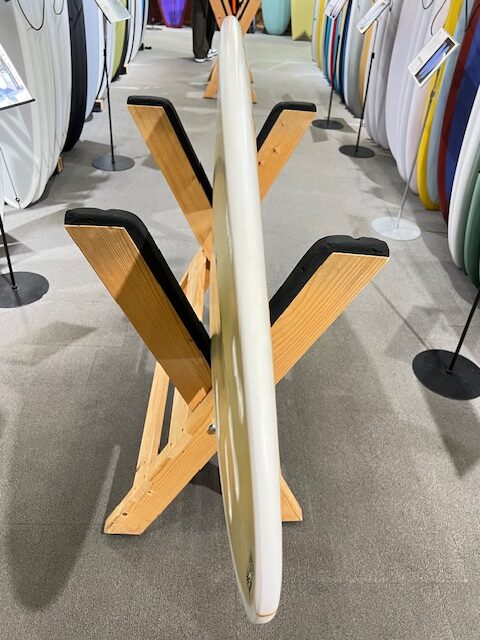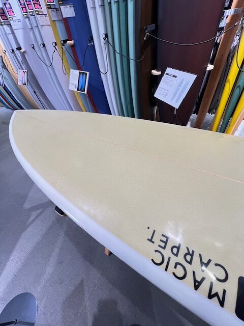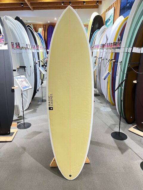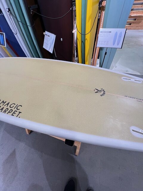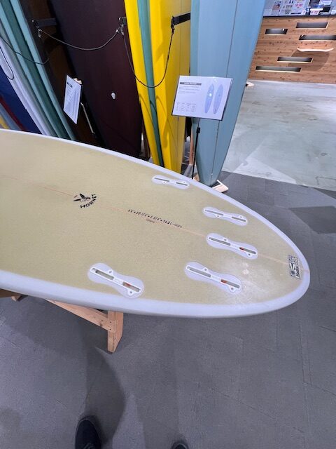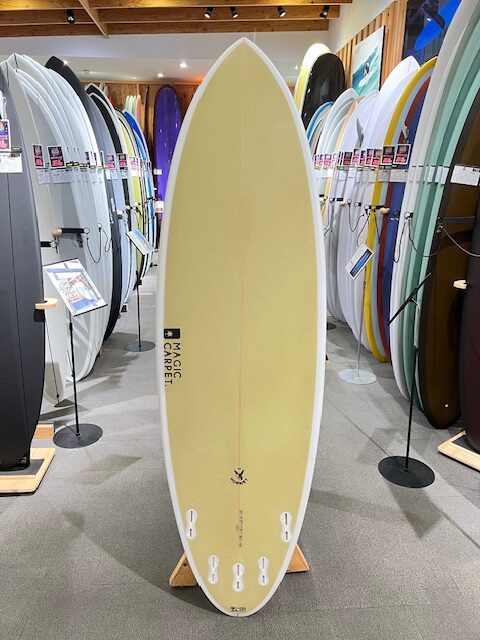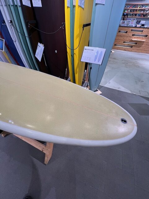 全体的にフルなアウトラインとフラットなロッカーそして絞り込まれたラウンドテールでデザインされており、ノーズ部分はフラットヴィーそしてその他の部分はダブルコンケーブになっています。