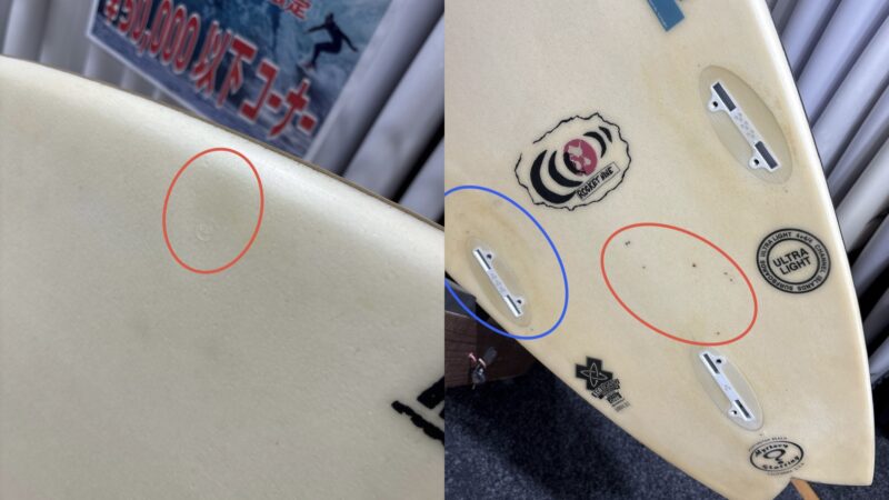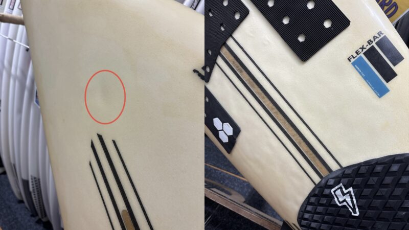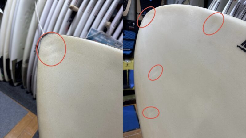 新品未使用品であっても、店舗にて展示中についた細かい傷がある場合もございます。中古ボード特有のものでございまして、価格がお安くなっている理由の一つでございます。