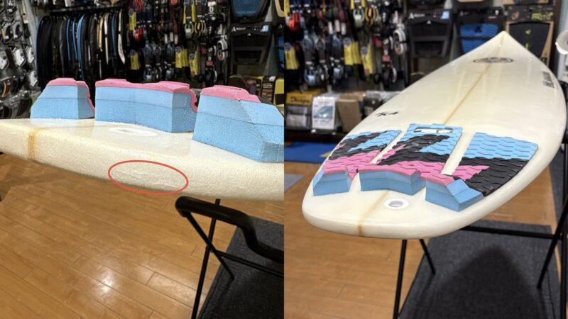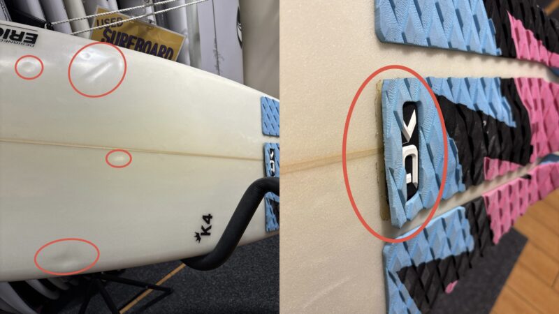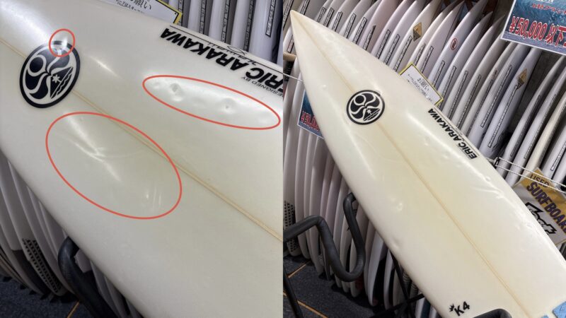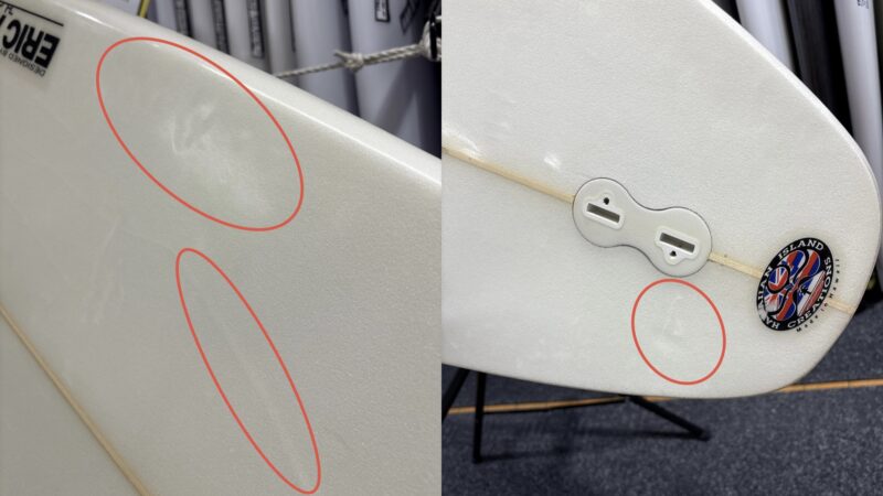 新品未使用品であっても、店舗にて展示中についた細かい傷がある場合もございます。中古ボード特有のものでございまして、価格がお安くなっている理由の一つでございます。
