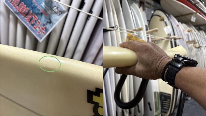 新品未使用品であっても、店舗にて展示中についた細かい傷がある場合もございます。中古ボード特有のものでございまして、価格がお安くなっている理由の一つでございます。