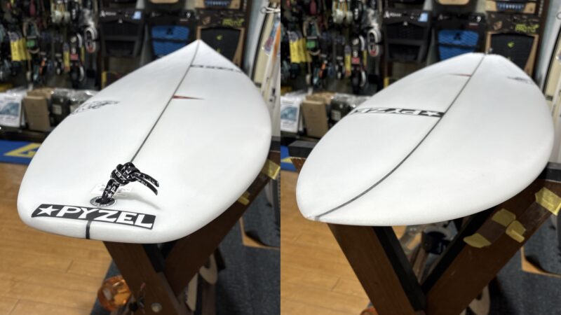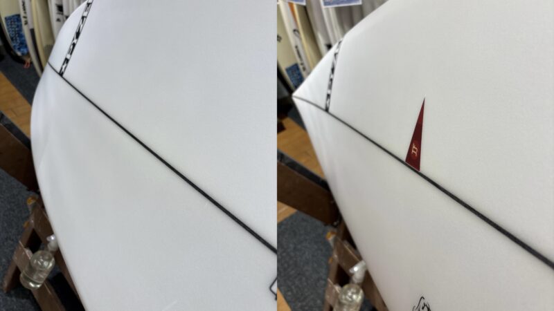 ノーズが細くなることで、掘れた波でも引っかからず、波にフィットします。