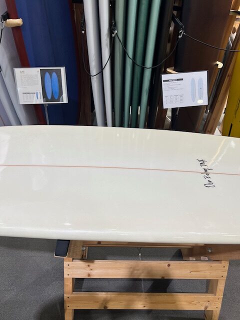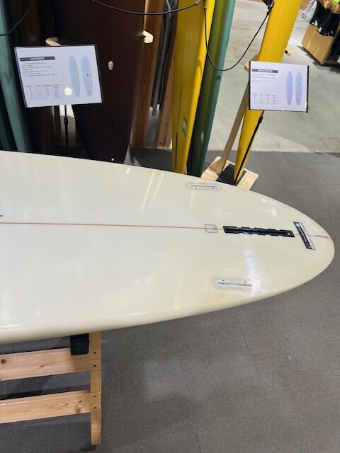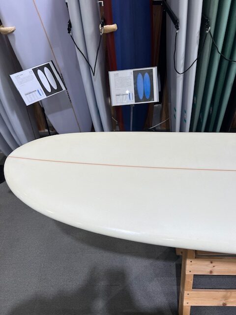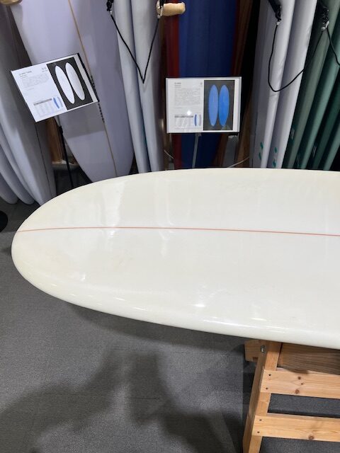 ノーズからのロング並みのワイドなアウトラインにロッカーも抑えたデザインはパドリング、テイクオフも容易な安定性抜群の「ミニロング」。
