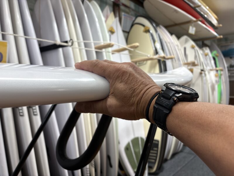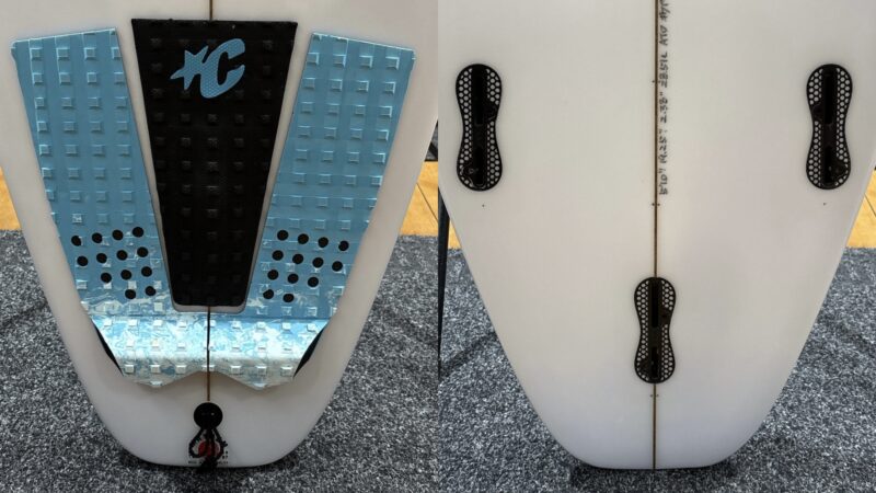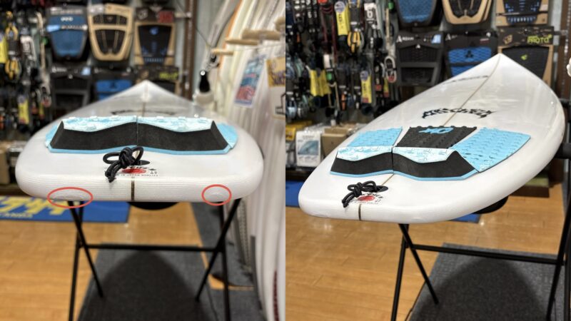 テール部を突き刺すようなハイパフォーマンスサーフィンが可能な