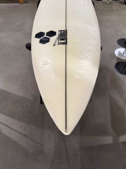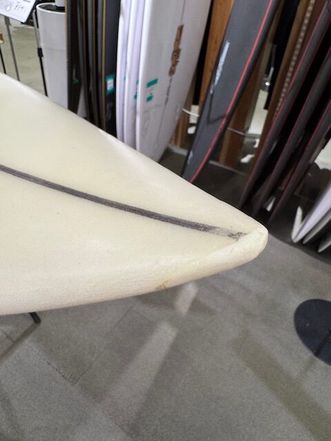 ノーズ部分は意図的に控えめなエントリーロッカーを入れているのでパドリングしやすく、すばやくスピードがでて、特にチューブの中では素晴らしいパフォーマンスを発揮してくれます。