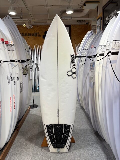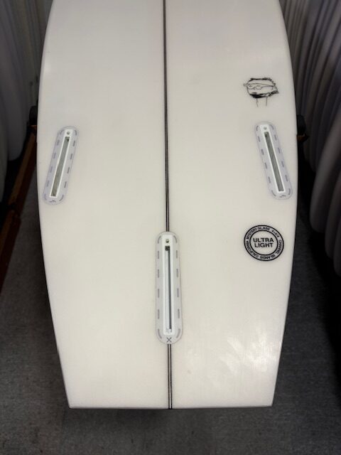 テールは幅が広いチョップドテールでフラットにすることで 波の貼りつき感があってテイクオフ時も波の力を最大限拾って くれるので力の弱い波でも調子よくライディングができるでしょう。
